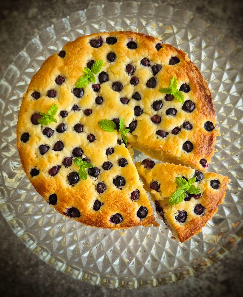 Denna saftiga kaka vispar du snabbt ihop och det går utmärkt att byta ut blåbären emot bär du har hemma. Använder du frysta bär så vänd runt dem i några msk potatismjöl innan du häller dem på kakan. Detta för att undvika att de ska sjunka till botten.